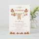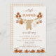 Folhagem de bege castanho Chá de fraldas de Clothesline Convite à chá de fraldas de linha de roupas bonitas para outono com algumas roupas de bebê, abóbora e folhagem de outono. Este pequeno convite para chás de fraldas de abóbora também apresenta uma fonte de caligrafia decorativa.