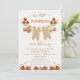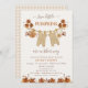Folhagem de Gêmeos Marrons Marrons Queda Chá de fraldas de Clothesline Convite à chá de fraldas de roupas bonitas no outono com duas roupas de bebê, abóbora e folhagem no outono. Estas duas pequenas abóboras estão a caminho. O convite para chás de fraldas gêmeos também apresenta uma fonte de caligrafia decorativa.