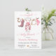 Chá de fraldas de vaquinha. Apresenta um padrão de cowhide cor-de-água rosa, ferradura, macacões, botas de cowboy, chapéu de cowboy e lasso na linha do clothesline, em cores rosa. Todos os textos podem ser alterados. Para fazer mais mudanças, vá para Personalizar este modelo. Na parte inferior você verá "Quer personalizar este design ainda mais? Clique em EDIT usando a ferramenta Design. A partir daí você pode mudar algumas fontes e algumas cores, mover coisas ou excluir o que você precisa.