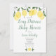 Com limões modernos em verde, esta longa distância botânica na moda por chá de fraldas de correio ou convite para borrifar pode ser personalizada com suas informações especiais sobre eventos e suas iniciais de monograma no verso. Projetado por Thisnotme©