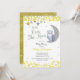 Amarelo sobre o Chá de fraldas da Lua Convite para uma garota com lua, estrelas e belas cinzas douradas.