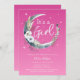 Celebrar a chegada de uma pequena princesa com este convite de chá de fraldas rosa-chico, com um capim-boêmico e arranjo floral cercando uma lua rosa-macia. O anúncio "É uma Garota" é lindamente escrito no centro, convidando os entes queridos a se reunir em homenagem à futura mãe e à sua filha.