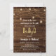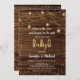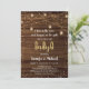 Este convite elegante apresenta luzes brilhantes de cordas e frascos de pedras com um fundo de madeira rústica.