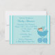Adorável carruagem azul de bebê e convite para chá de fraldas de macaco. Este convite para chá de fraldas de macacos para bebês é facilmente personalizado para o seu evento.