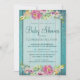 Convites Chá de fraldas de Madeira Azul Floral Rosa Russo