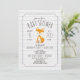 Um convite de chá de fraldas com uma ilustração de uma raposa bebê. Personalize o texto. O fundo é a cinza de madeira de design inspirada na luz.
