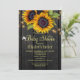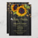 Chá de fraldas de convite para na moda de estilo russo para modelo de no chão marrom-escuro como fundo apresentando grandes buquês de girassol de ouro amarelo e cordas de luzes cintilantes. +++++++++++++++++ Fácil de personalizar com seus detalhes! ++++++++++++ O convite é adequado para jardins exteriores / quintais rústicos bebês ou chás de raparigas ou para festas de gênero.
