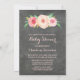 Convites personalizados para bebês em flores coloridas cor-de-água cor-de-rosa com fundo padrão de quadro. Perfeito para primavera ou chá de fraldas de verão.