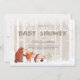 Europeia: Um convite para chás de fraldas fofo e divertido! Tudo desenhado à mão! Tema de inverno em Woodland. Sexo neutro.