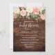 Convites Chá de fraldas de Madeira Floral Dourada Peach
