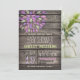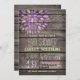 Convite para chá de fraldas com lavanda brilhante púrpura, rosa, flor verde, design floral no campo de colheita rústica ocidental, madeira castanha, fundo estampado de madeira com fontes elegantes e antigas. Perfeito para o país, fazenda, fazenda, lance de barraca, garoto neutro ou chás de fraldas de meninas! Este convite giro e divertido é o excelente ano redondo para primavera, verão, outono ou chás de fraldas neutros de inverno!