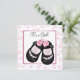 Adoráveis fezes cor-de-rosa para bebês e pés para chuveiros de bebês apresentam um par bonito de calçados de bebês rosas e pretos. Este convite bonito para chás de fraldas cor-de-rosa e preto é facilmente personalizado para o seu evento, simplesmente escolhendo o botão "Personalizar!" para começar a adicionar detalhes do evento, estilo de fonte, tamanho de fonte e cor e texto. Observe que todos os designs de cartas e convites que você encontrará no Zazzle são gráficos impressos sem joias reais, arcos, levantados, gravados em relevo ou peças ou peças adicionadas.