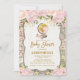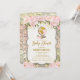 Convite para Chás de fraldas de Viagens vintage rosa e Dourada para Meninas com flores cor-de-água cor-de-rosa pincelada, ilustração feminina de um globo e confete de ouro falso