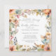 FAIRIAS ENCANTADAS CAIR NO CHÁ DE FRALDAS FLORAL DO OUTONO - Versão clara e clara do fundo branco | Flores coloridas de fadas de jardim numa fronteira de cor quente de outono de âmbar, pêssego e azul empoeirado com folhagem de folha de outono. No verso está a mesma imagem com uma fada adorável Um conjunto completo de produtos está disponível para compra na coleção. MSP0114