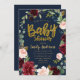 Convites chá de fraldas de Marinho burgundy com script de b