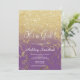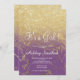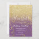 Um mármore ombre moderno, original e simples, brilhante, dourado. É um convite para chá de fraldas de menina num fundo de cor roxa