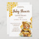 Este convite encantador mostra um ursinho de pelúcia incrivelmente bonito vestido de abelha. Adorado num suéter listrado e asas delicadas de abelhas, o urso é acompanhado por um boião de mel. O fundo é lindamente ilustrado com padrões de mel. Esta coleção encantadora e exclusiva é executada em estilo aquarela, capturando a essência da doçura. A paleta de cores consiste em tons quentes e semelhantes a mel. Torne a celebração do seu pequeno inesquecível com a nossa coleção.