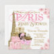 Convites Chá de fraldas de Menina de Paris rosa e Dourada