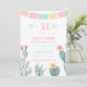 Design de convite para Chás de fraldas coloridos e divertidos com cactos de aquarela / pera picante para um divertido Chá de fraldas de temática mexicana ou Baby Sprinkle receber uma menina.