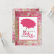 Um convite para chás de fraldas de meninas que apresenta uma ilustração de um guarda-chuva rosa sobre um fundo de pétalas de flores. Personalize o texto com detalhes da sua ocasião.