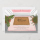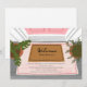 Ilustração da porta frontal com porta rosa com plantas em cada lado e tapete de boas-vindas sobre tapete de dispersão rosa.