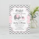 Convites Chá de fraldas de menina - tema elefante cor-de-ro