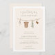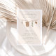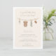 Este convite moderno para Chás de fraldas de vassoura apresenta uma caligrafia moderna com roupas de bebê pintadas à mão - a maneira perfeita de sotaçar o chá de vocês. Edite facilmente a maioria dos textos, textos e cores que são totalmente editáveis para corresponder ao seu evento!