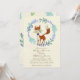 Um convite para chá de fraldas de raposa branca com fundo de marfim e coroa azul floral. Fácil de editar ou excluir os campos de texto para atender às suas necessidades pessoais.