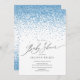 Convite moderno de chá de fraldas com brilho azul com fonte de caligrafia contemporânea e um brilho de coordenação para um toque especial extra.