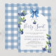 Celebre o seu pequeno a caminho com este encantador convite à Chá de fraldas Coquette Berry Sweet Blueberry. Perfeito para os futuros pais que amam um tema fresco e caprichoso, esta design combina a doçura das amoras aquáticas com um toque de elegância coqueteira. Apresentando mirtilos pintados à mão, morangos delicados, e um padrão de gingham macio, cria uma sensação quente, inspirada no mercado, que é simultaneamente lúdica e moderna. Um detalhe de arco delicado adiciona a quantidade certa de sofisticação, fazer este convite uma escolha adorável para um chá de fraldas de menino.