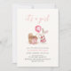 Moderno minimalista: é um tema de chá de fraldas de berçário de uma menina, design com coelho aquoso em tecido rosa segurando o balão e seu carrinho de carruagem bebê. Você encontrará o convite do chá de fraldas, os suprimentos de decoração do chá de fraldas nesta coleção. Personalize sua própria palavra e cor usando o design de edição.