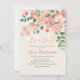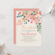 Este belo convite de chá de fraldas para raparigas florais apresenta flores buquê em laranja, pêssego, cor rosa e branca esbranquiçada com cor verde pistácio no fundo.Um convite perfeito para o chá de fraldas de tendências em estilo 'boho' para o seu chá de fraldas.