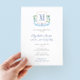 Convites Chá de fraldas De Monograma Costeiro Azul Elegante