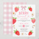 Convites Chá de fraldas de Morango de Gingham-Fita-PINK