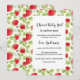 Convite de chá de fraldas de morango elegante com ilustração de nuvens e céu azul. A mensagem obrigado convidados para vir ao chá.