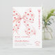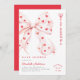 Convite de chá de fraldas elegante e adorável, com uma fita rosa macia adornada com corações vermelhos, colocada contra um fundo branco nítido. Perfeito por celebrar uma futura mãe especial! Totalmente personalizável com seus detalhes de evento, incluindo nome, data, hora, local, informações de RSVP e muito mais.