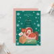 Bebê ilustrado com chapéu de santa em uma árvore de natal em meio a presentes de natal Ilustrações originais de Becky Nimoy.