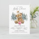 Bem-vindos amados com este encantador convite de chá de fraldas de inverno que apresenta um ursinho de peluche a aquarela em um chapéu, com um ornamento rosa, contra uma floresta de pinheiros com neve. O estilo suave e minimalista estabelece um tom sazonal aconchegante enquanto mantém o foco em sua celebração. Ideal para chás de fraldas hospedados durante o inverno ou a época de Natal, este design combina calor festivo com detalhes doces e eternos. Personalize o texto para se adequar ao seu encontro e torná-lo exclusivamente seu.