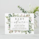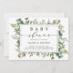 Este convite para chá de fraldas apresenta cor d'água pintada de eucalipto, folhas verdes, bagas vermelhas, ramos de pínus e um quadro retangular verde com na moda caligrafia. Para personalização mais avançada deste design, clique no link "Personalizar mais". Itens correspondentes também estão disponíveis.