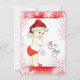 Floco de neve vermelho e branco adorável e doce bebê vestindo um convite para o chá do bebê de Natal. Este belo convite para chá de fraldas vermelho e branco do Floco de Neve é facilmente personalizado para o seu evento, adicionando detalhes do seu evento, estilo da fonte, tamanho e cor da fonte e texto.