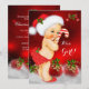 Chá de fraldas de Natal para Garota Branca Vermelha Verde, Bonita. Menina loira com convite para o Papai Noel. Ouro elegante e folhas verdes e ocas, folheadas, com arcos e brilho dourado num fundo prateado em floco de neve. Nota: Todas as imagens planas!