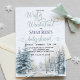 Este primeiro convite de aniversário da "Wonderland de inverno", com uma paisagem florestal de neve enquanto fundo exude uma atmosfera mágica e encantadora, perfeitamente adequada para uma celebração com tema de inverno. O pano de fundo do convite é uma paisagem de neve respiratória. Ele retrata uma terra maravilhosa serena do inverno, com pinheiros altos carregados de flocos de neve escutadores. As árvores criam um quadro majestoso para o convite, seus ramos aparentemente chegando ao centro.No geral, este convite para o chá de fraldas "Wonderland de inverno" com uma paisagem florestal de neve como pano de fundo promete uma celebração mágica e memorável em meio a uma terra maravilhosa de inverno, estabelecendo o tom perfeito para um marco especial em sua vida.