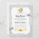 Amarelo bonito e cinza bonitinho, o convite para chá de fraldas de natal com tema, apresentando uma coruja de mamã, um ninho com ovos e um padrão de xadrez que pode ser revertido conforme as especificações do seu evento.