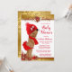 Nenhumas convidadas de natal com adorável menina afro-americana vestindo uma roupa vermelha bonitinha em um bonito fundo de poinsettia vermelha e dourada. Este belo convite para chás de fraldas de Natal é facilmente personalizado para o seu evento simplesmente adicionando o texto necessário para o seu evento.