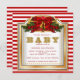 Bonito convite para chás de fraldas de Natal vermelho e branco, vermelho e ouro. Este elegante convite para chás de fraldas de Natal é facilmente personalizado para o seu evento simplesmente adicionando os seus detalhes no estilo de fonte e cor, redação e layout da sua escolha.
