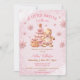 Um docinho está a caminho! Chá de fraldas de Natal com uma adorável garota de pão-de-gengibre, árvore de Natal, flocos de neve e presente, tudo em rosas claro e beges. Personalize facilmente todo o texto. - Kate Eden Art