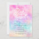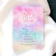 Celebre a chegada do seu bebê com o convite de Chá de fraldas de nuvens de aquarela rosa-claro-mágico unicórnio moderno, cor-de-rosa brilhante, azul, amarelo, púrpura, nuvens de aquarela do arco-íris com letra de escrita a negrito.