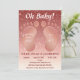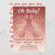 Este convite mostra rosa de pés de ouro de menina em ombre brilhante! Você está tendo uma garota? Este convite é perfeito para você! O convite para chá de fraldas de pés de bebê desta menina está pronto para ser personalizado. Insira todas as informações específicas para o seu chá e local! A parte de trás do cartão tem pés de menina na parte de trás para um talento extra!