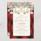 XADREZ Vermelha EDITABLE Natal Dourado Ornament Chá de fraldas Convite para apresentação de árvores de Natal Elegante Festa de Chá de fraldas Dourada Prata