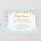 Convites chá de fraldas de ouro azul-bebê + dourado